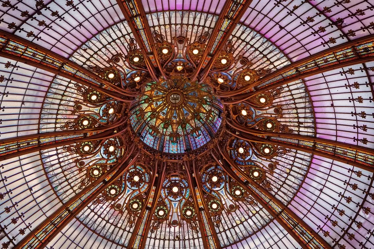Les deux jeunes sortirent du métro et pénétrèrent rapidement dans les Galeries Lafayette, "mode féminine". Très vite, leurs regards furent attirés par l’immense coupole Art Nouveau ignorée de beaucoup de parisiens.